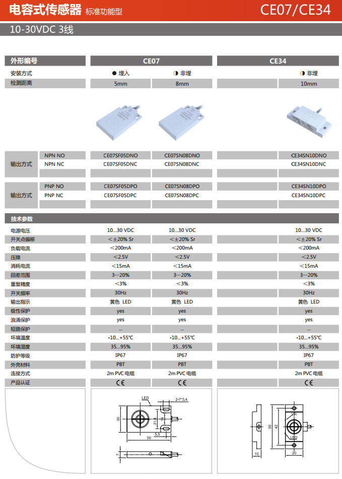 CE07SF05DNO,CE07SF05DNC,CE34SN10DPO,CE34SN10DPC,CE07SN08DPO,CE07SN08DPC,CE07SF05DPO,電容式傳感器