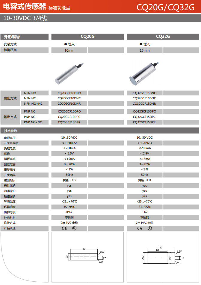 詳細信息 CQ20GCF10DNO,CQ20GCF10DNC,CQ20GCF10DNR,CQ20GCF10DPO,CQ20GCF10DPC,CQ20GCF10DPR,電容式傳感器CQ32GCF15DNO,CQ32GCF15DNC,CQ32GCF15DNR,CQ32GCF15DPO,CQ32GCF15DPC,CQ32GCF15DPR,