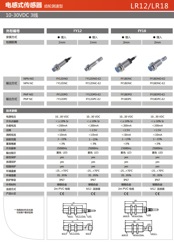 FY12DNO,FY12DNC,FY12DNO-E2,FY12DNC-E2,FY18DNC,FY18DNC,FY18DNO-E2,FY18DNC-E2,電感式傳感器