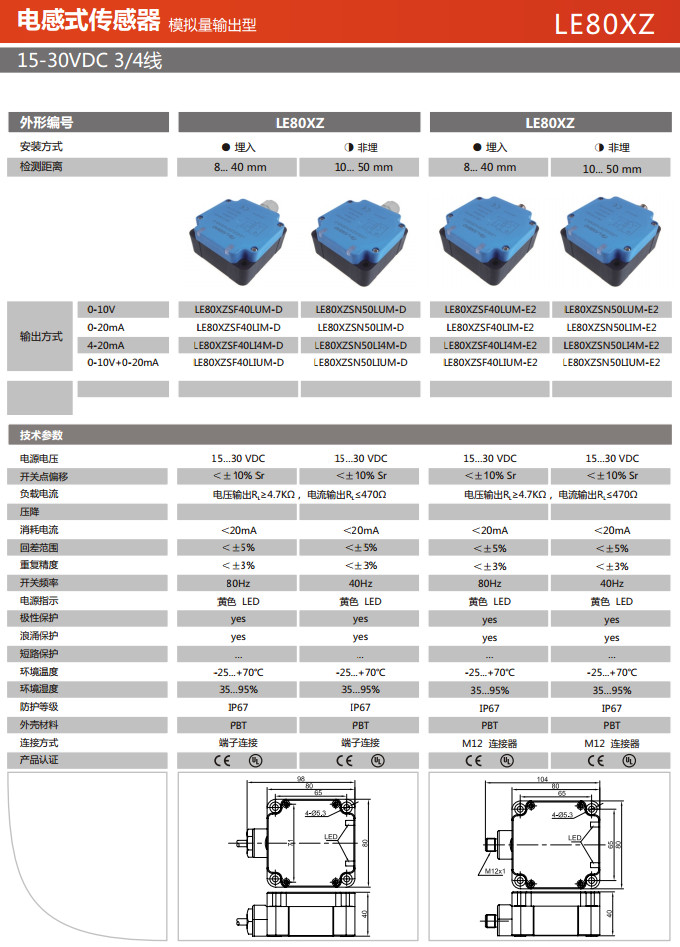 LE80XZSF40LUM-D,LE80XZSF40LIM-D,LE80XZSF40LI4M-D,LE80XZSF40LIUM-D,LE80XZSN50LUM-D,電感式傳感器