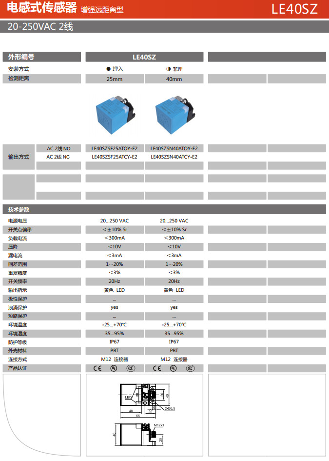 詳細信息 LE40SZSF25ATOY-E2,LE40SZSF25ATCY-E2,LE40SZSN40ATOY-E2,LE40SZSN40ATCY-E2,電感式傳感器