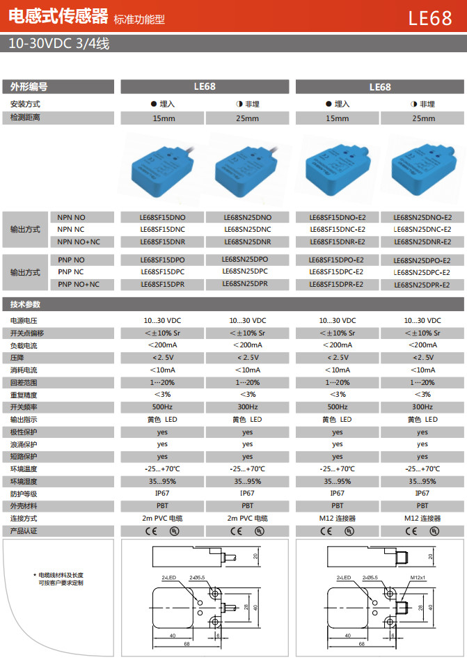 詳細(xì)信息 LE68SF15DNO,LE68SF15DNC,LE68SF15DNR,LE68SN25DNO,LE68SN25DNC,LE68SN25DNR,電感式傳感器