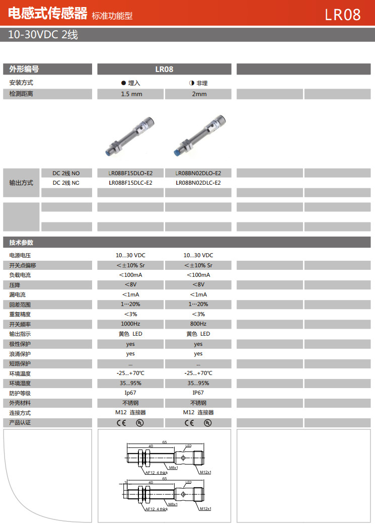 詳細(xì)信息 LR08BF15DLO-E2,LR08BF15DLC-E2,LR08BN02DLO-E2,LR08BN02DLC-E2,電感式傳感器