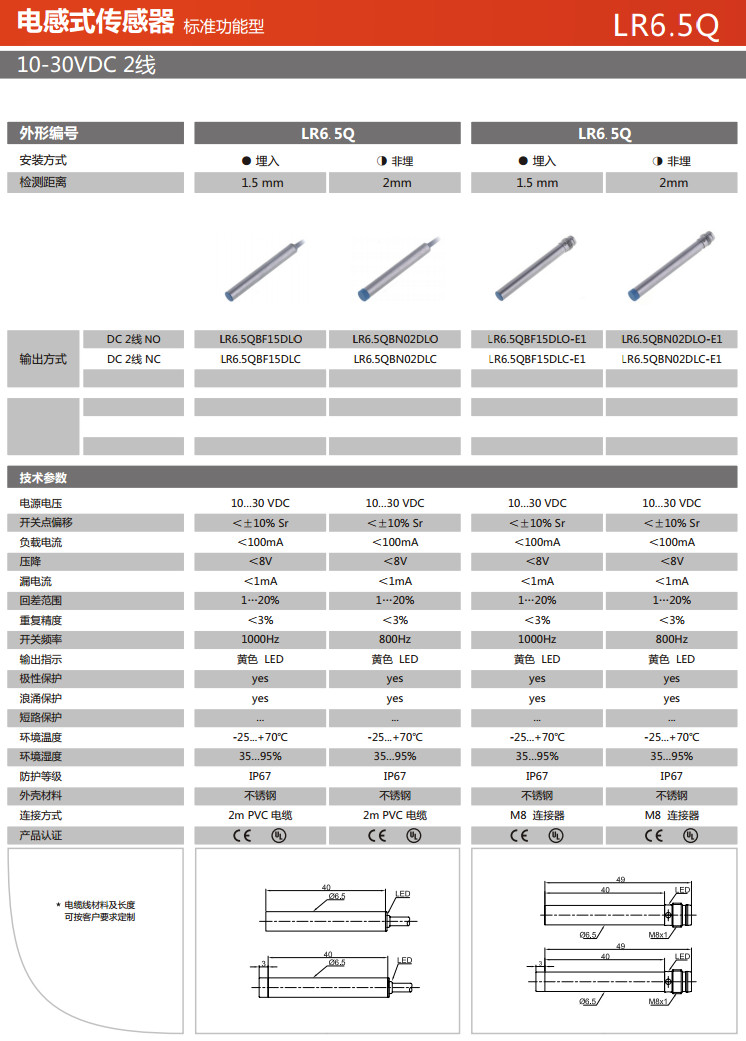詳細信息 LR6.5QBF15DLO,LR6.5QBF15DLC,LR6.5QBN02DLO,LR6.5QBN02DLC,LR6.5QBF15DLO-E1,電感式傳感器