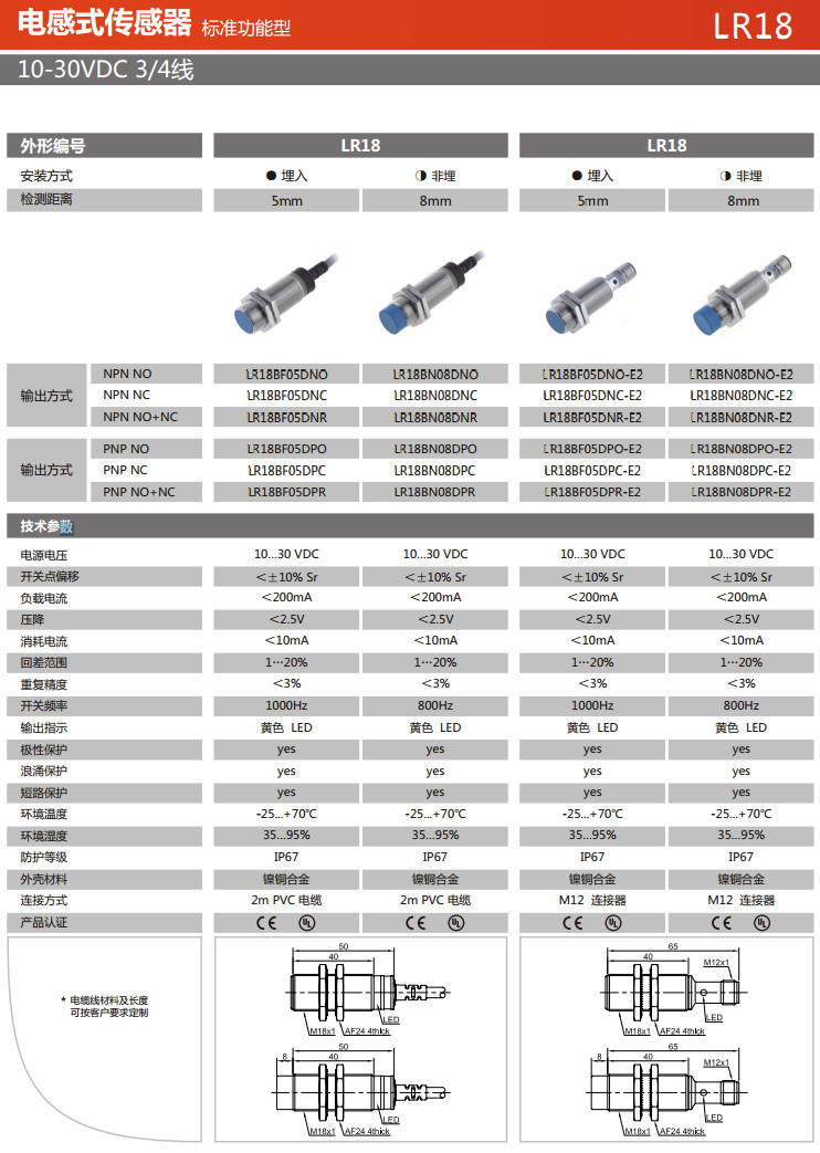 LR18BF05DNO,LR18BF05DNC,LR18BF05DNR,LR18BN08DNO,LR18BN08DNC,LR18BN08DNR,電感式傳感器