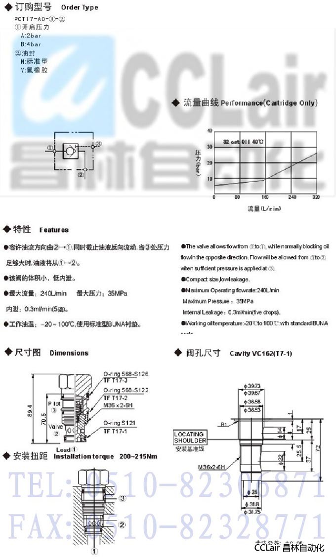 詳細信息 PCT17-A0-A-N,PCT17-A0-A-V,PCT17-A0-B-N,PCT17-A0-B-V,液控單向閥