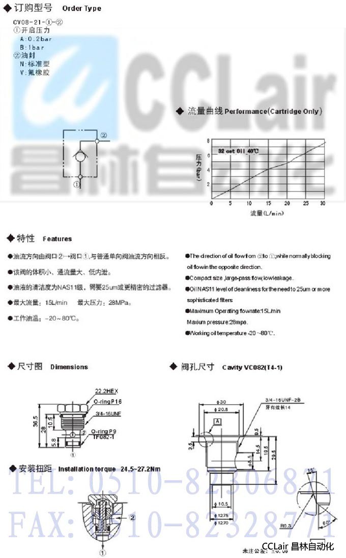 詳細信息 CV08-21-A-N,CV08-21-B-N,CV08-21-A-V,CV08-21-B-V,逆流單向閥