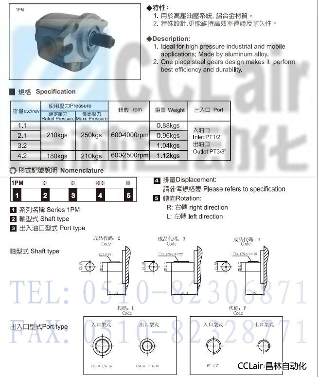 詳細(xì)信息 1PM2U,1PM2P,1PM3U,1PM3P,1PM4U,1PM4P,齒輪泵