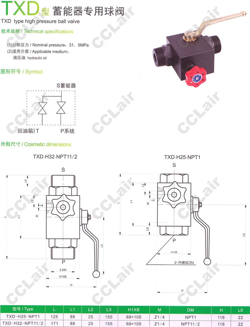 詳細(xì)信息 TXD-H25-NPT1,TXD-H32-NPT11/2,蓄能器專用球閥