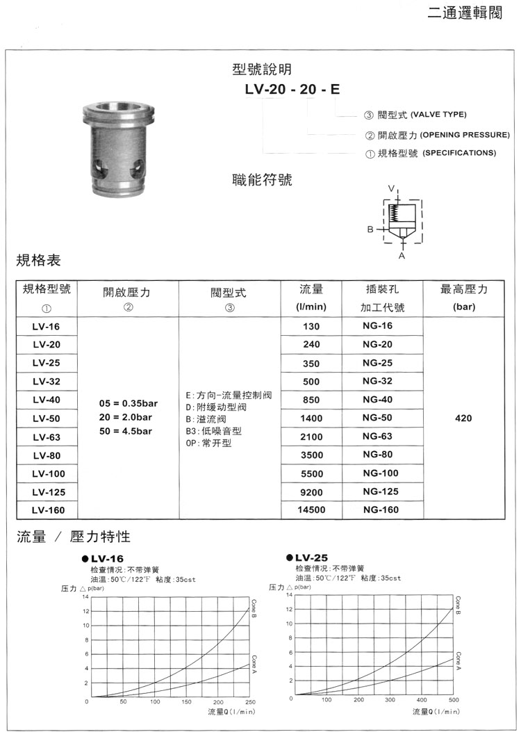 LV-16,LV-20,LV-25,LV-32,LV-40,LV-50,LV-63,LV-80,LV-100,LV-125,LV-160,二通邏輯閥
