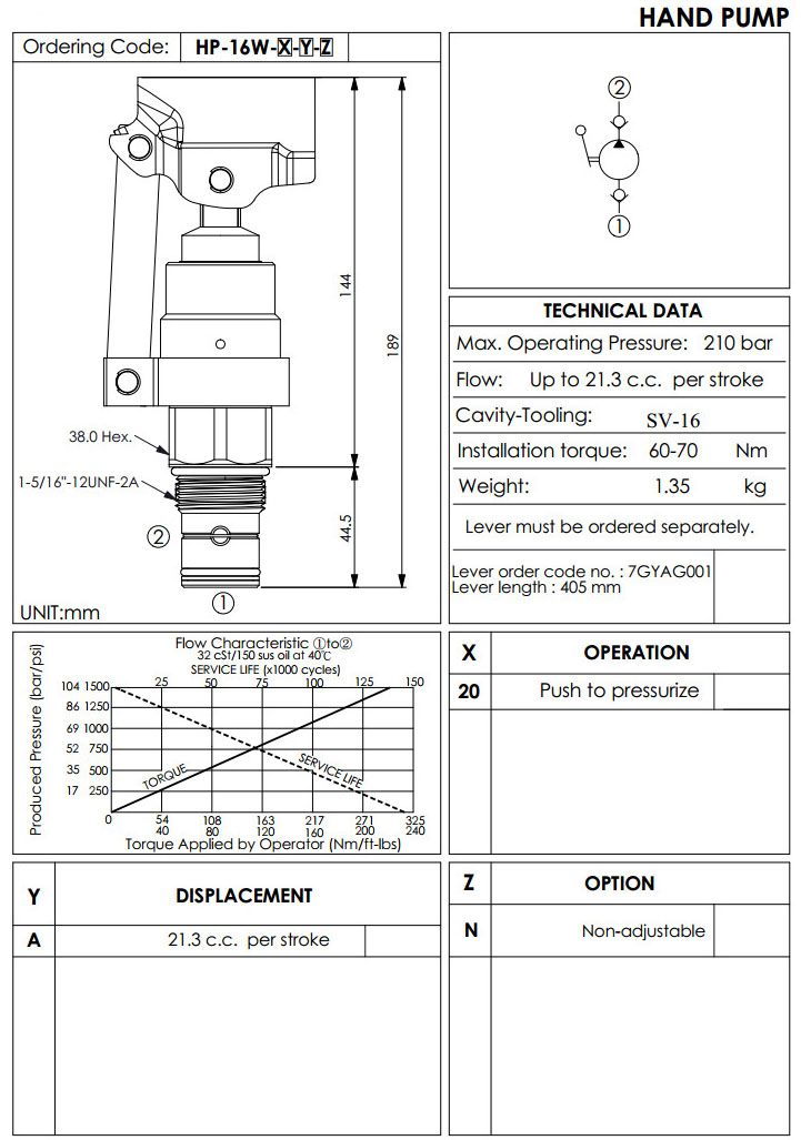 HP-16W-20-A-N,手動泵