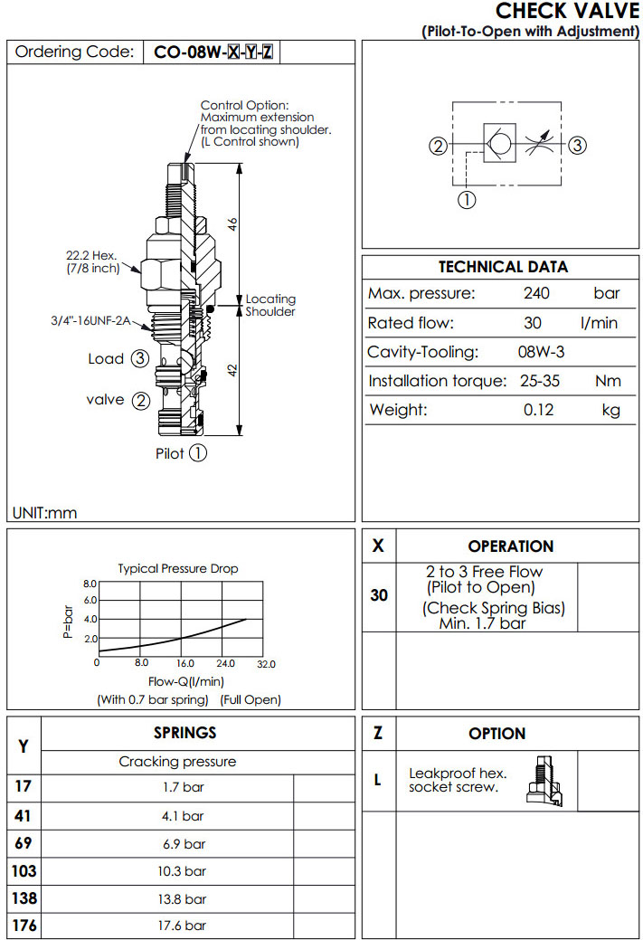 詳細信息 CO-08W-30-17-L,CO-08W-30-41-L,CO-08W-30-69-L,CO-08W-30-82-L,CO-08W-30-103-L,CO-08W-30-138-L,止回閥