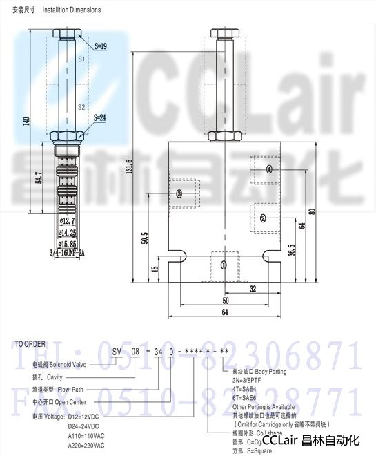 SV-08-340,電磁換向閥