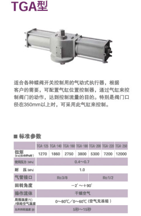 TGA-125,TGA-140,TGA-160,TGA-180,TGA-200,TGA-220,TGA-250,TOMOE氣動(dòng)執(zhí)行器