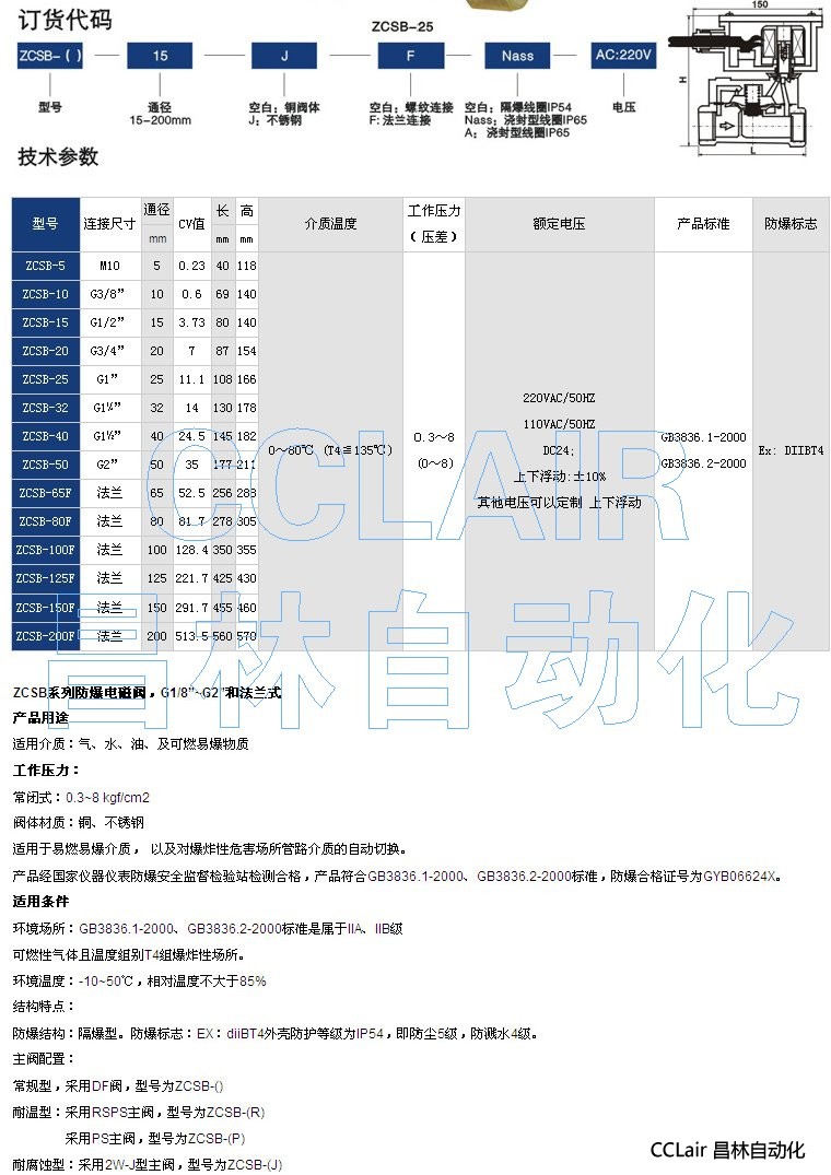 ZCSB-5,ZCSB-10,ZCSB-15,ZCSB-20,ZCSB-25,防爆電磁閥,G1/8”~G2”和法蘭式