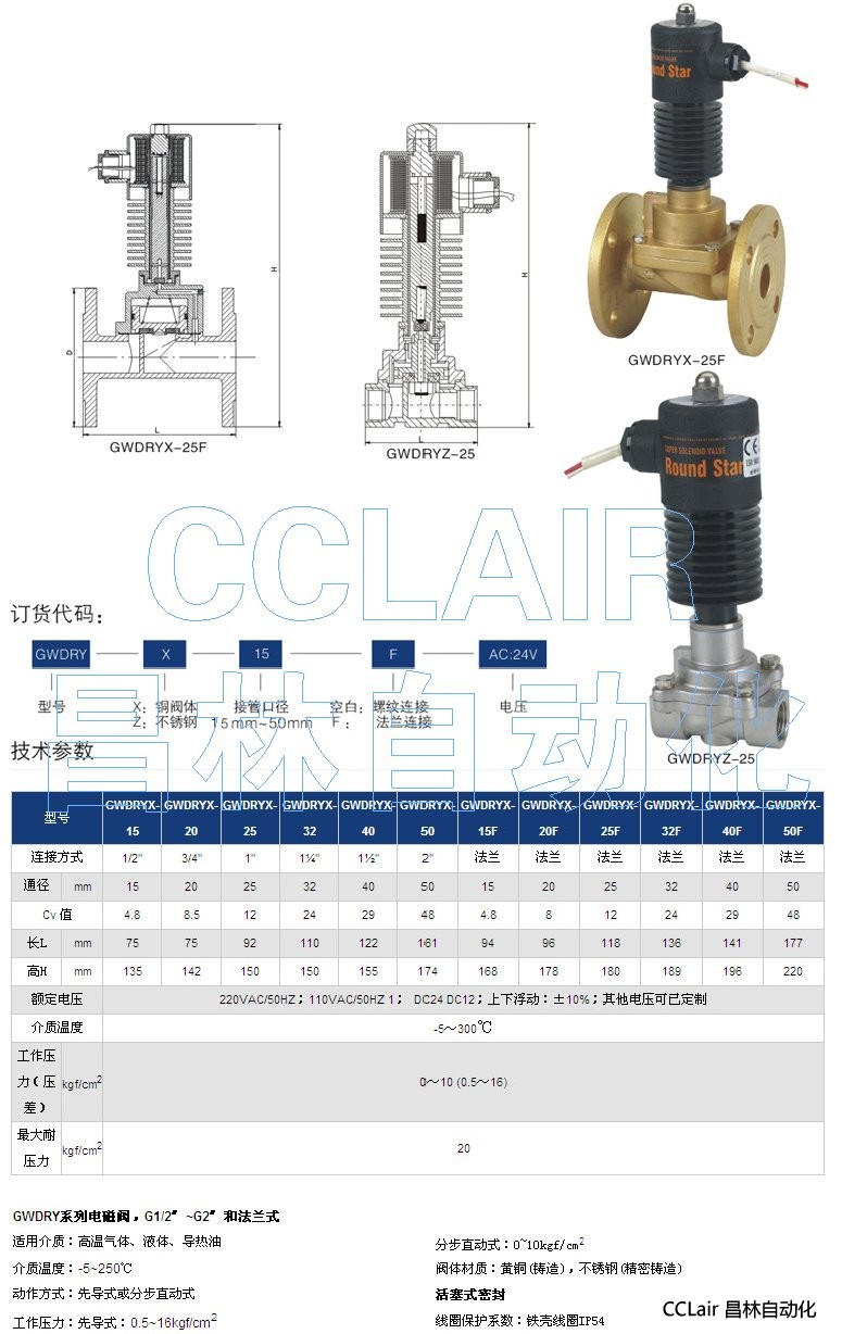 GWDRYX-15,GWDRYX-20,GWDRYX-25,GWDRYX-32,電磁閥,G1/2〞~G2〞和法蘭式