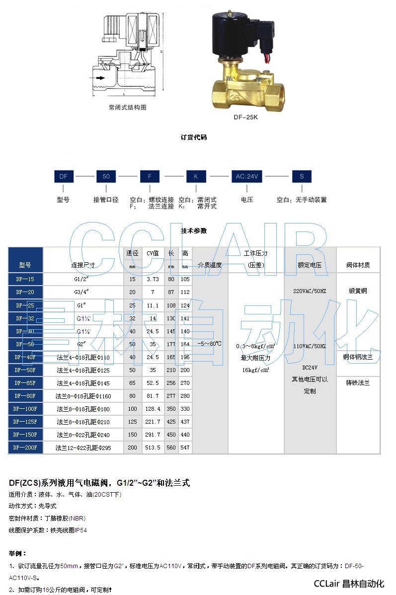 DF-15,DF-20,DF-25,DF-32,DF-40,DF-50,液用氣電磁閥,G1/2〞~G2〞和法蘭式