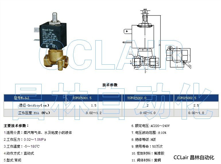 YSF025001.5,YSF025002.0,YSF025002.5,兩位三通咖啡機電磁閥