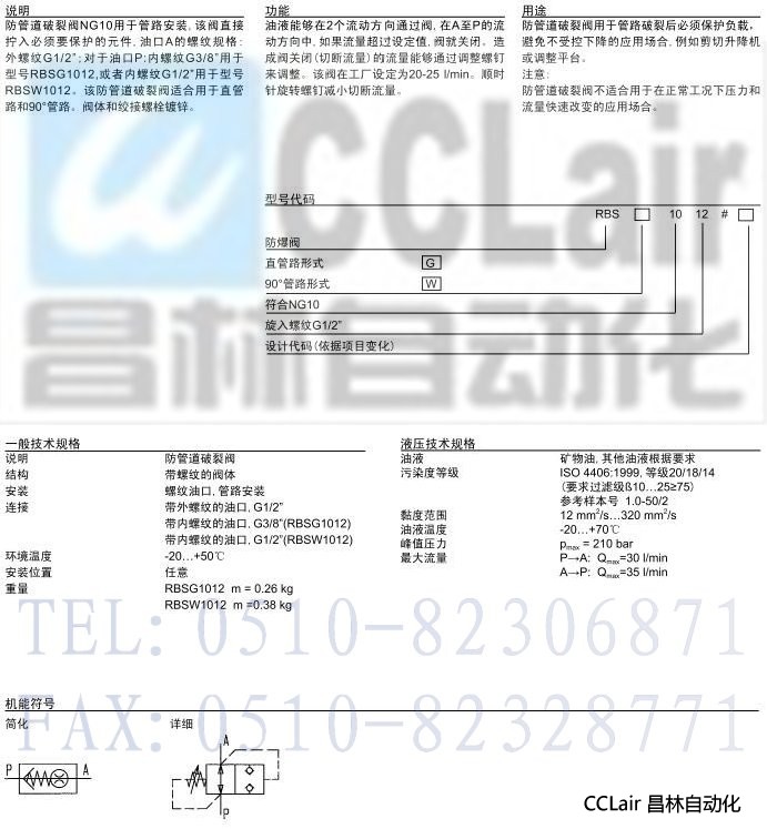 RBSG1012,RBSW1012,管式防管道破裂閥