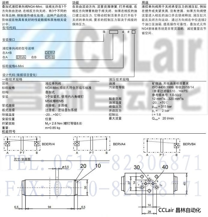 BDERV4,BERVA4,BERVB4,疊加式液控單向閥