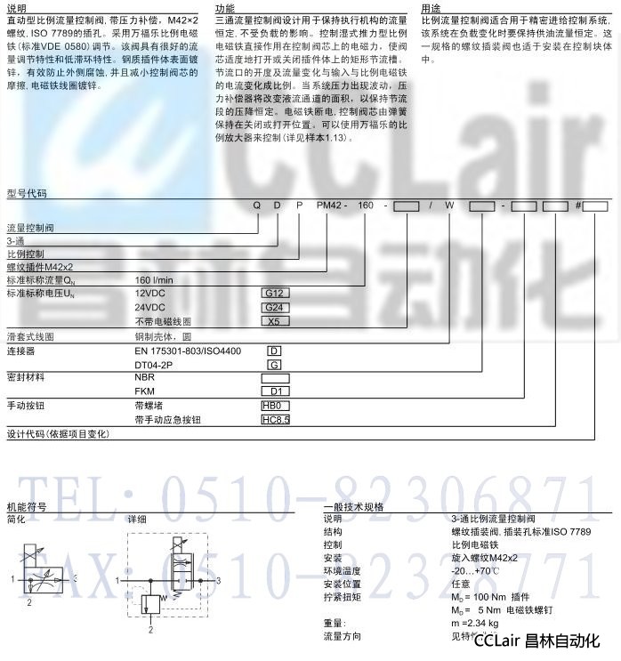 詳細信息 QDPPM42,QDPPM42-160,插裝式比例3-通流量控制閥(滑套式線圈)