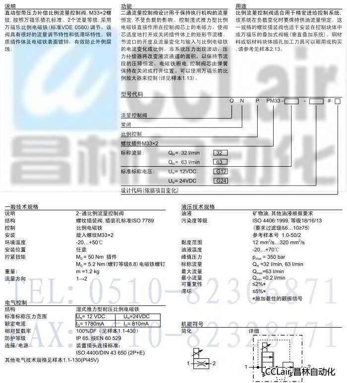 產(chǎn)品: 瀏覽次數(shù):796QNPPM33,插裝式比例 2-通流量控制閥