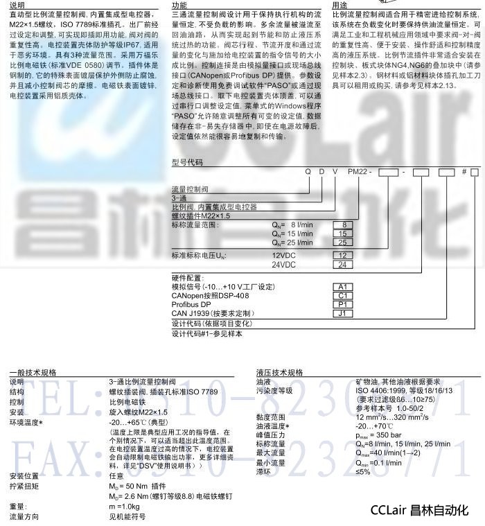 QDVPM22,插裝式比例 3-通流量控制閥(內(nèi)置集成型電控器)