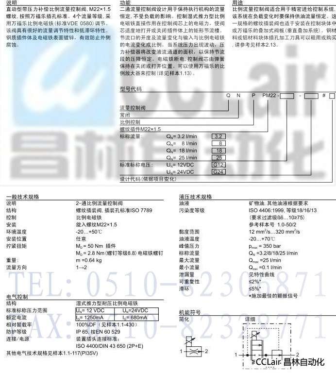 產(chǎn)品: 瀏覽次數(shù):733QNPPM22,插裝式比例 2-通流量控制閥