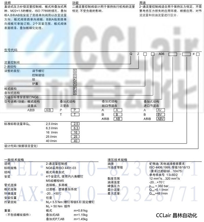 詳細(xì)信息 QZ.SA06-A/B,QZ.SA06-P,QZ.SA06-T,2-通板式和疊加式流量控制閥