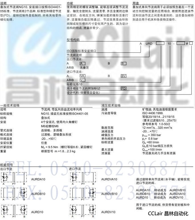 AURDA10,AURDB10,AURD10,AURDVA10,AURDVB10,AURDV10,疊加式單向節(jié)流閥