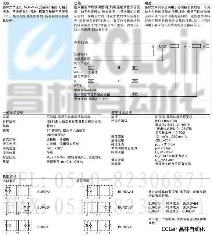 BURDA4,BURDB4,BURDVA4,BURD4,BURDVB4,BURDV4,疊加式單向節(jié)流閥