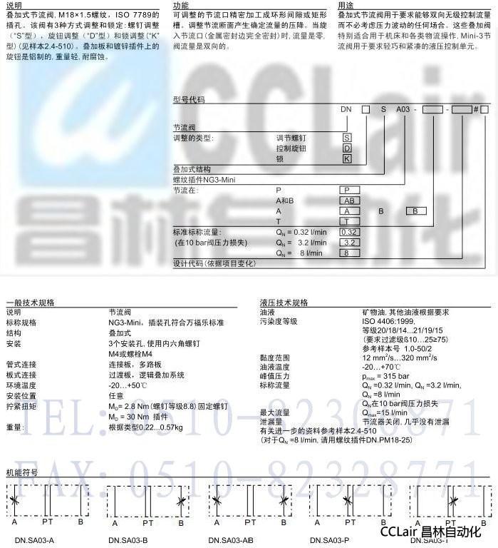 DN.SA03-A,DN.SA03-P,DN.SA03-B,DN.SA03-T,DN.SA03-AB,疊加式節(jié)流閥