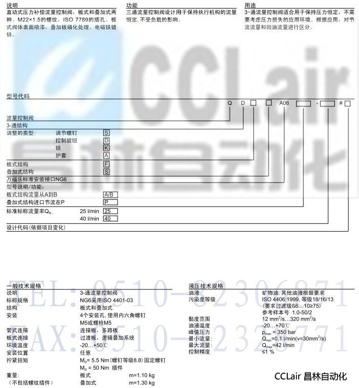 詳細信息 QD.SA06-A/B,QD.SA06-P,3-通板式和疊加式流量控制閥