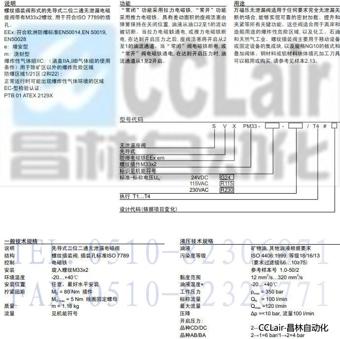 SVXPM33-DC,SVXPM33-CD,SVXPM33-BA,SVXPM33-AB,先導式插裝式防爆無泄漏電磁閥EEx em II