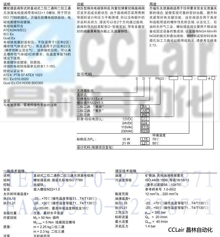SDYPM22-BA-L21,SDYPM22-AB-L21,直動(dòng)式插裝式防爆無(wú)泄漏電磁閥EEx d II C