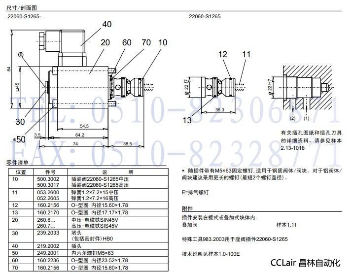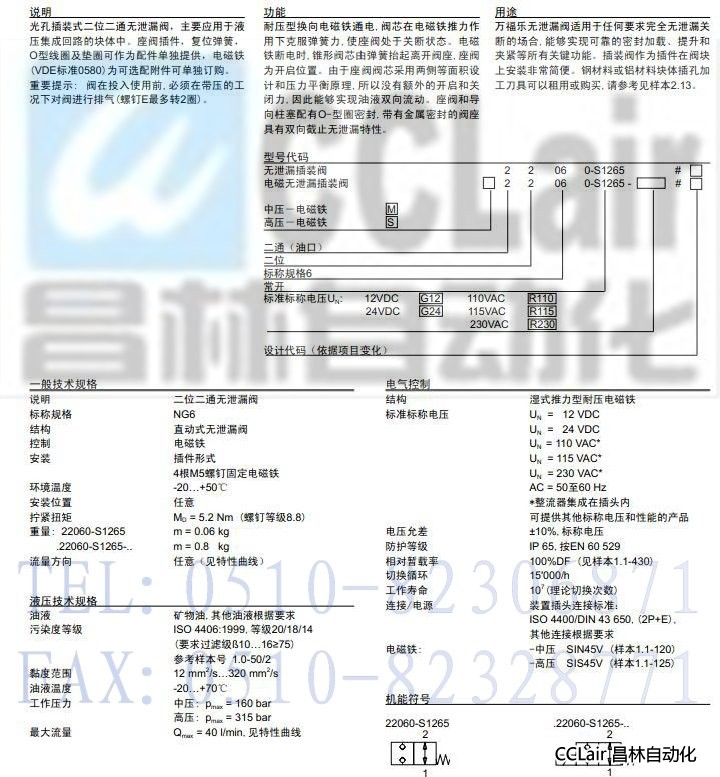 M22060-S1265,S22060-S1265,插裝式無泄漏電磁閥