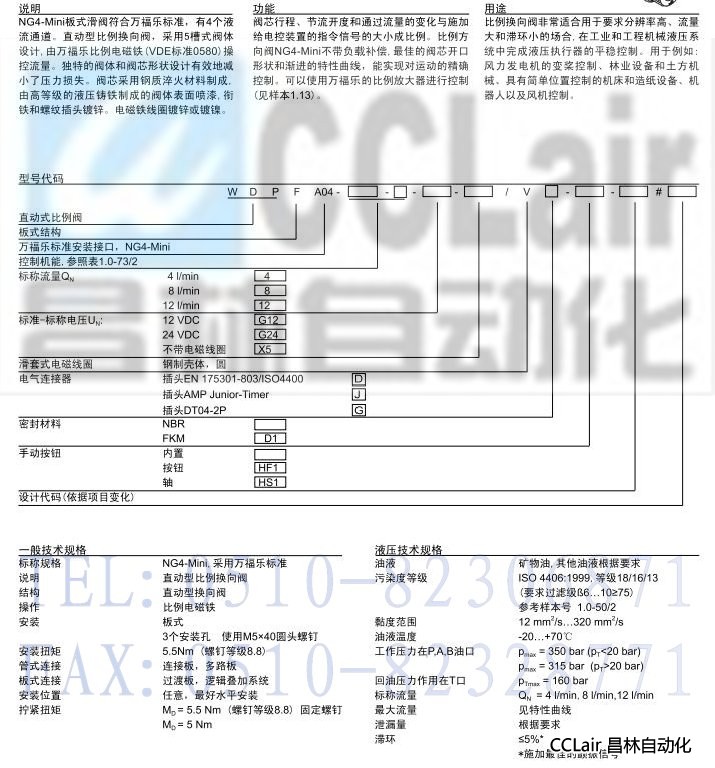 產(chǎn)品: 瀏覽次數(shù):606WDPFA04,比例換向閥(滑套式線圈)