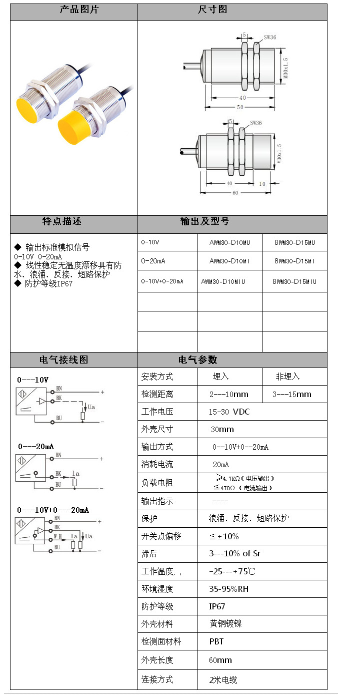 詳細信息 AWM30-D10MU,BWM30-D15MU,BWM30-D15MI,AWM30-D10MIU,BWM30-D15MIU,M30模擬量傳感器