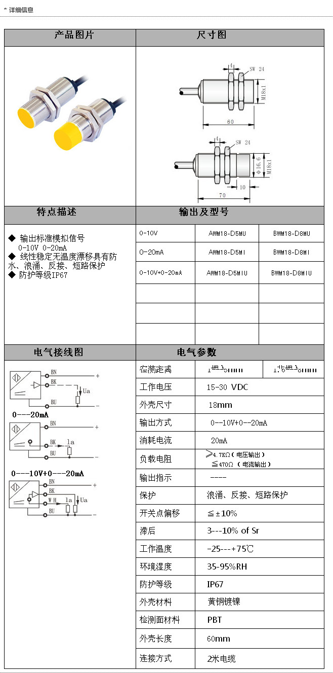 詳細(xì)信息 AWM18-D5MU,BWM18-D8MU,AWM18-D5MI,BWM18-D8MI,AWM18-D5MIU,BWM18-D8MIU,M18模擬量傳感器