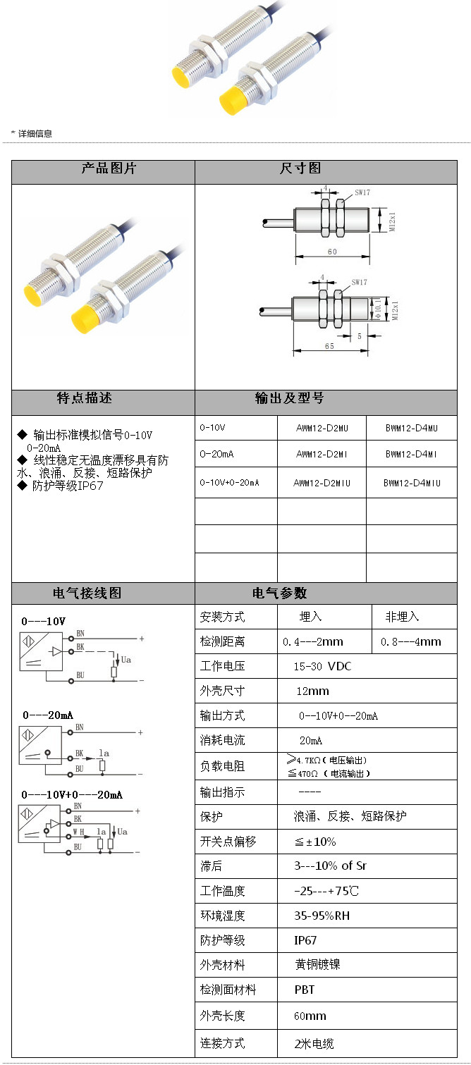 詳細(xì)信息 AWM12-D2MU,BWM12-D4MU,AWM12-D2MI,BWM12-D4MI,AWM12-D2MIU,BWM12-D4MIU,M12模擬量傳感器