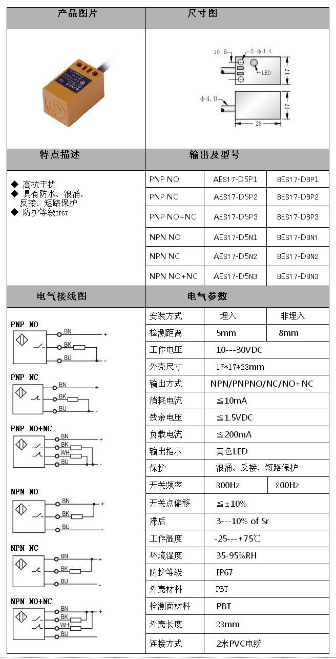 型號: AES17-D5P1,BES17-D8P1,AES17-D5P2,BES17-D8N2,AES17-D5N3,BES17-D8N3