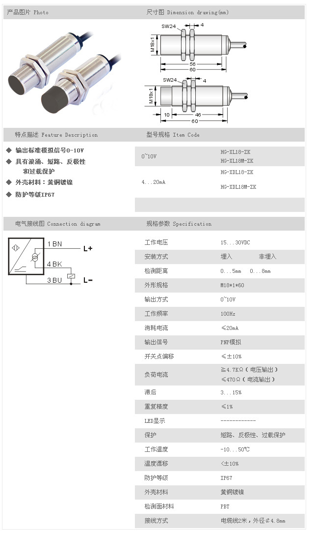 詳細信息 電感式線性傳感器 HG-XL18-ZK,HG-XL18M-ZK,HG-XDL18-ZK,HG-XDL18M-ZK,