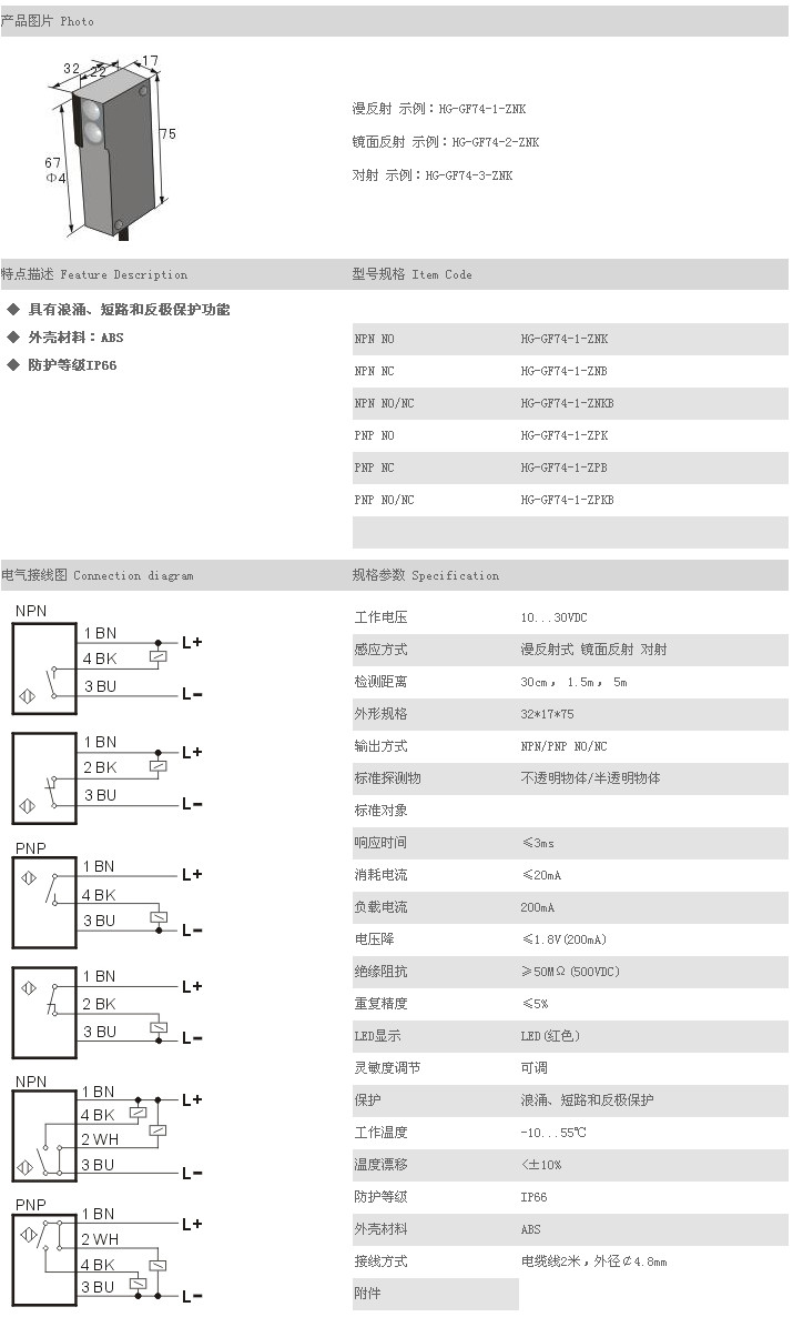 詳細(xì)信息 方型光電開關(guān)/傳感器 HG-GF74-1-ZNK,HG-GF74-1-ZNB,HG-GF74-1-ZNKB,HG-GF74-1-ZPK,HG-GF74-1-ZPB,HG-GF74-1-ZPKB,