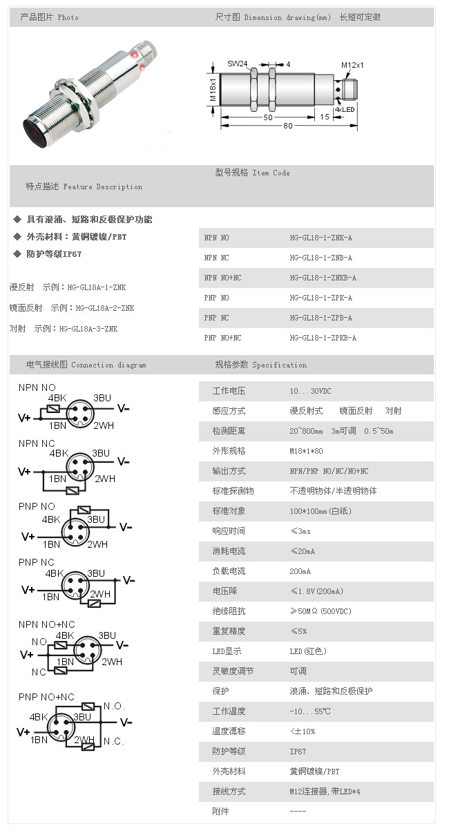 詳細(xì)信息 圓柱型光電開關(guān)/傳感器 HG-GL18-1-ZNK-A,HG-GL18-1-ZNB-A,HG-GL18-1-ZNKB-A,HG-GL18-1-ZPK-A,HG-GL18-1-ZPB-A,HG-GL18-1-ZPKB-A,HG-GL18-2-ZNK-A,HG-GL18-2-ZNB-A,HG-GL18-2-ZNKB-A,HG-GL18-2-ZPK-A,HG-GL18-2-ZPB-A,HG-GL18-2-ZPKB-A,HG-GL18-3-ZNK-A,HG-GL18-3-ZNB-A,HG-GL18-3-ZNKB-A,HG-GL18-3-ZPK-A,HG-GL18-3-ZPB-A,HG-GL18-3-ZPKB-A,