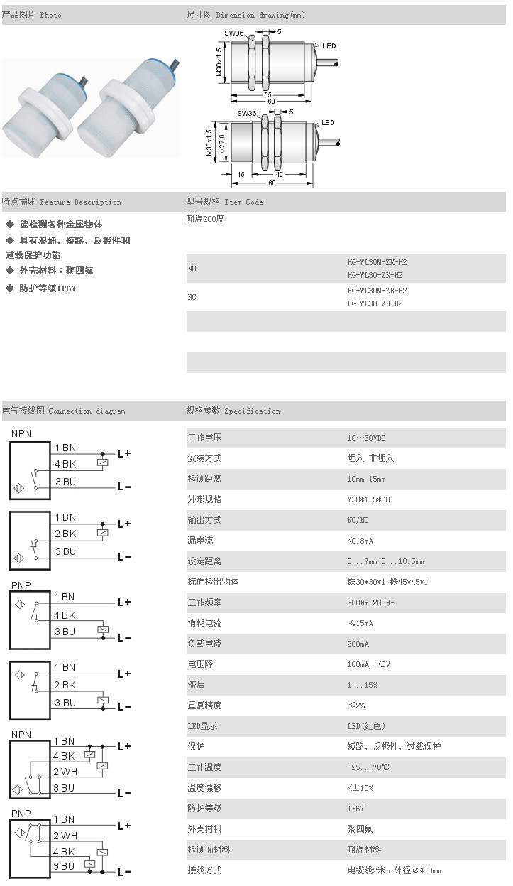 詳細信息 耐高溫接近開關(guān)(低溫) HG-WL30M-ZK-H2,HG-WL30-ZK-H2,HG-WL30M-ZB-H2,HG-WL30-ZB-H2,
