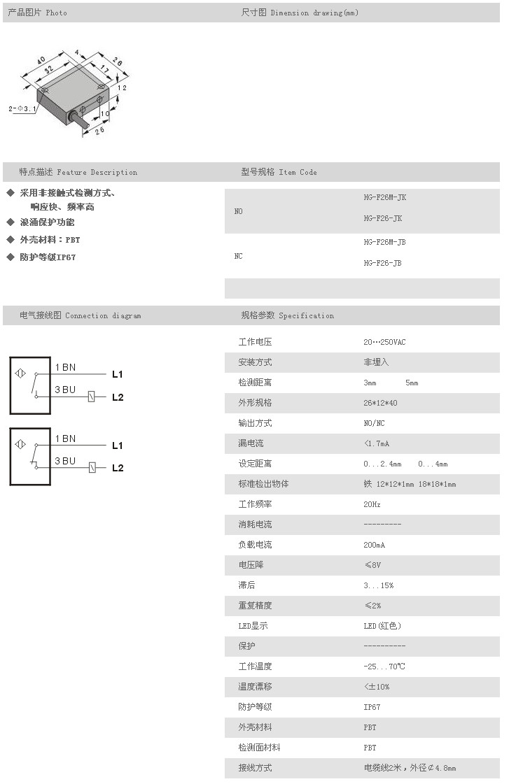 詳細(xì)信息 方型接近開(kāi)關(guān) HG-F26M-JK,HG-F26-JK,HG-F26M-JB,HG-F26-JB,
