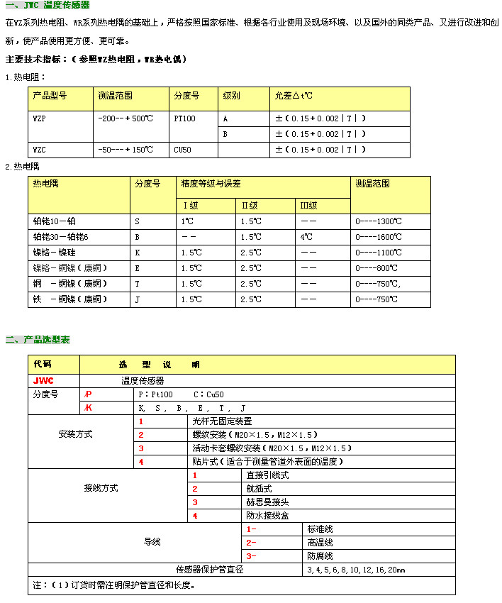 JWC-P1,JWC-P2,JWC-P3,JWC-P4,JWC-K1,JWC-K2,JWC-K3,JWC-K4,JWC,溫度傳感器