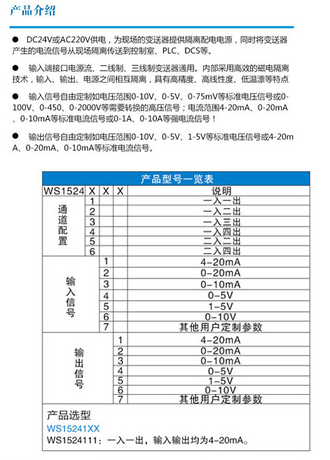 WS415241,WS415242,WS415243,WS415244,WS415245,WS415246,WS41524111,WS41524,直流信號隔離分配器
