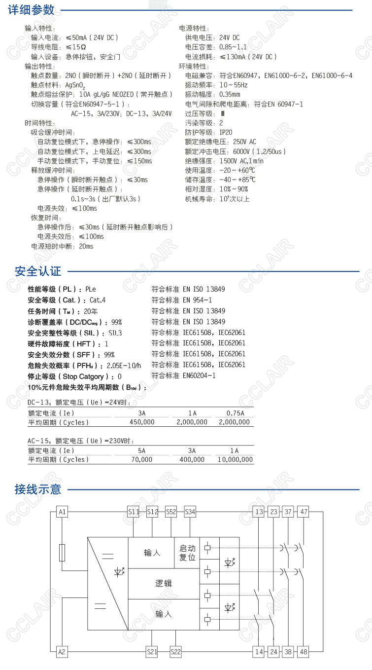 詳細信息 CZSR8002-2A2AT 急停按鈕、安全門輸入安全繼電器
