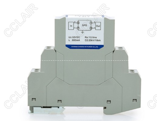 24VDC電源SPD,適合24VDC、電磁閥等電源回路,最大放電電流Imax(8/20us):20kA/線,12.5mm超薄,通過(guò)DIN35金屬導(dǎo)軌接地。